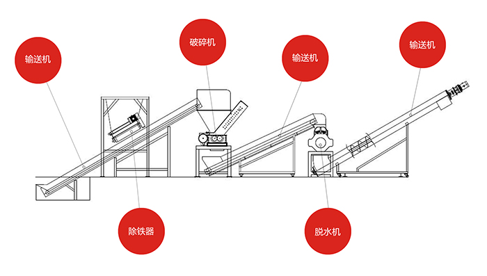 餐厨垃圾破碎脱水生产线系统对果蔬、餐厨垃圾的处置流程是破碎、压榨脱水、好氧发酵堆肥,以及污水、气味的辅助处理。